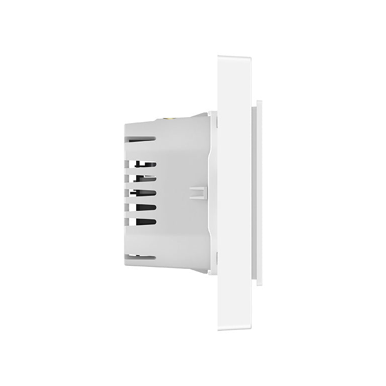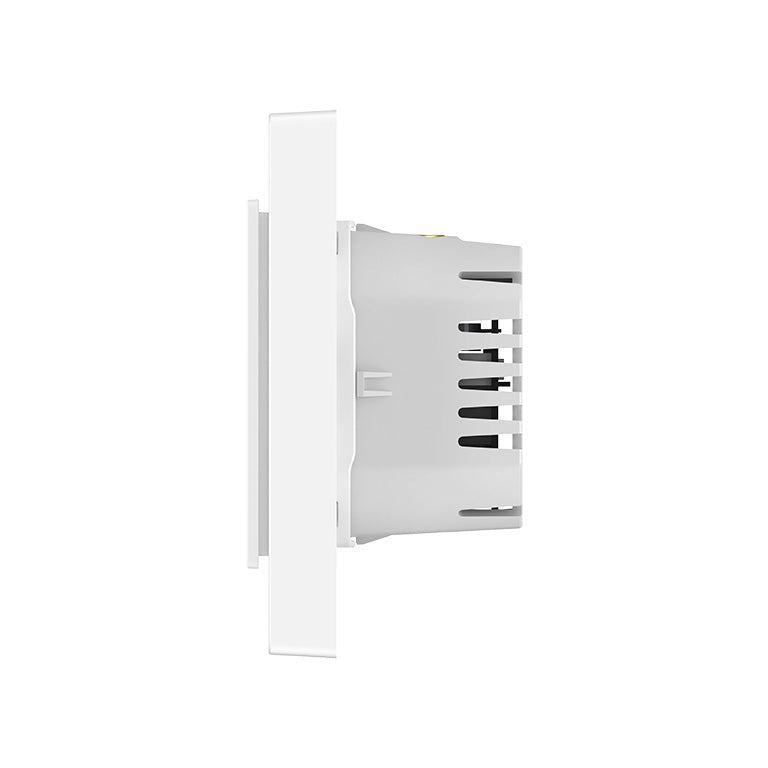 Der H2 EU wurde für die Anforderungen europäischer Unterputzinstallationen entwickelt und ersetzt einen bestehenden, verdrahteten Rolladenschalter. Nach der Kalibrierung kennt der Schalter die exakte Position des Behangs und erlaubt Dir prozentgenaue Fahrten sowie Szenen wie „Morgenlicht“ oder „Abendkino“. Die integrierte Fahrtrichtungs-Logik verhindert Fehlbedienungen (Auf/Ab), während die Interlock-Steuerung sicherstellt, dass nie beide Richtungen gleichzeitig angesteuert werden.